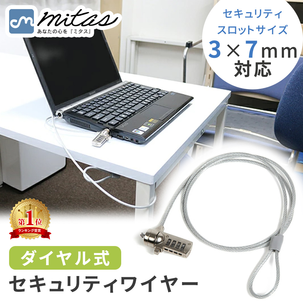 セキュリティ/ワイヤー/ダイヤル式/ダイヤル/ダイヤル錠/3×7/3×7mmスロット対応/4桁/四桁/セキュリティ/ロック/セキュリティスロット/約1.1m/盗難防止/盗難対策/ワイヤーロック/ノートパソコン/デスクトップ/デスクトップパソコン/モニター/パソコン/PC/カフェ/オフィス/事務所/展示場/新幹線/移動/軽量/コンパクト/金属/