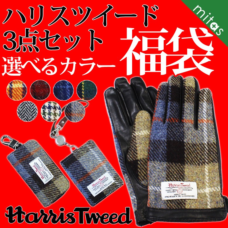 選べる福袋!数量限定!ハリスツイード生地を使った、スマホ対応手袋・キーケース・パスケースの3点セットです。