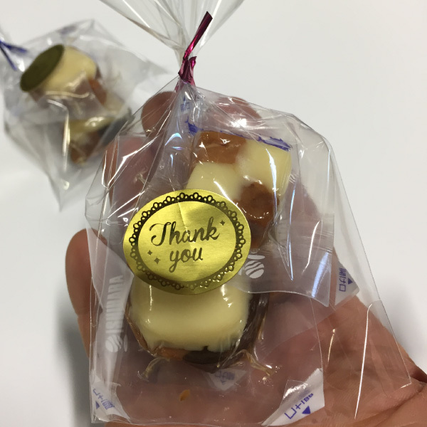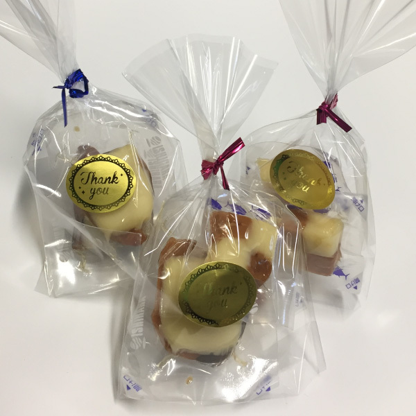 | 百均などで売っているラッピングを使うだけでお好きな量に可愛く小分けできます。 個別の真空包装になっているので品質も安心。 子供会でのプレゼント、大会の参加賞、ちょっとしたプレゼントへのお返し、バレンタインに同僚への義理チョコ代わり、などなどいろいろと使えます♪ | |