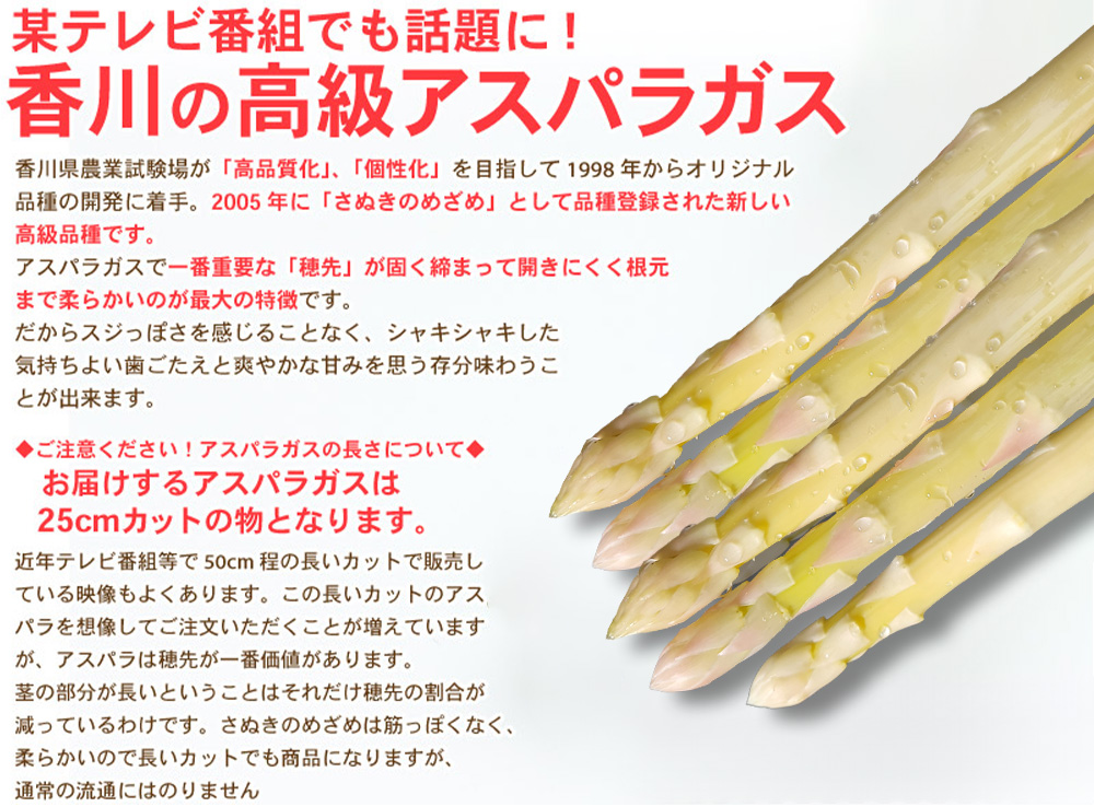 ●商品種別名 さぬきのめざめ、ホワイトアスパラ