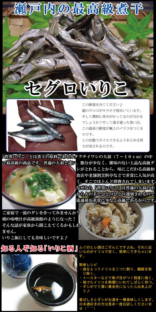 伊吹島沖産の高級煮干いりこ「セグロ」1kg /ダシ取り いりこダシ にぼし おやつ おつまみ 業務用 伊吹いりこ