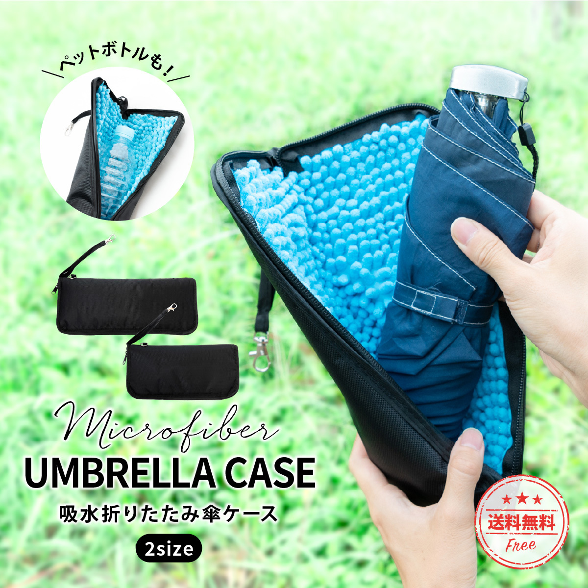 濡れた傘をサッとしまえてコンパクトに携帯できるマイクロファイバー素材の吸水折りたたみ傘ケースです。