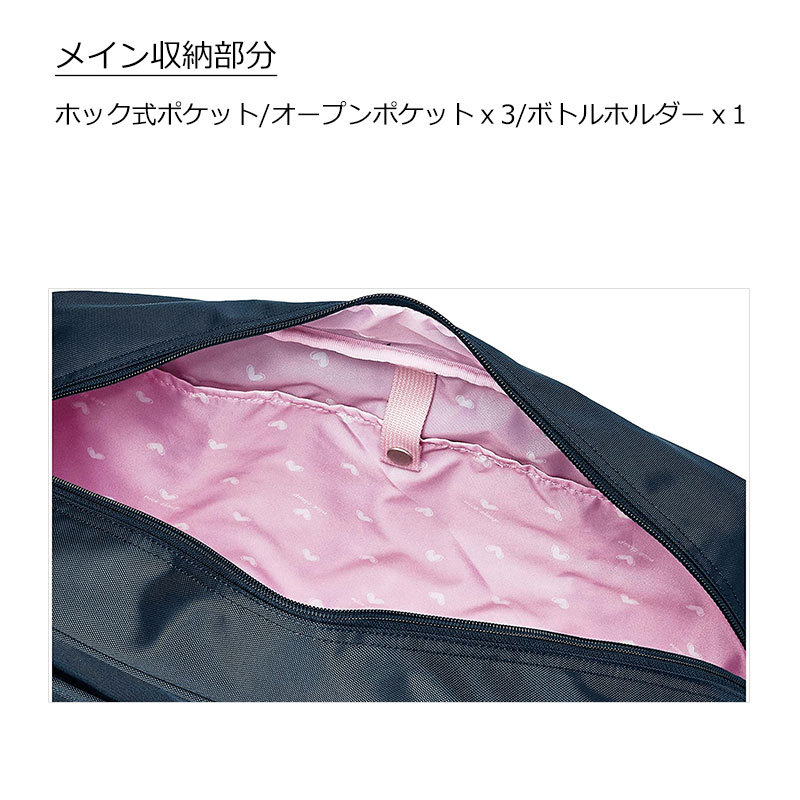 裏地はハートを散りばめた柄がキュート。チャーム等が取り付けられるD管が便利です。底鋲付きで汚れに配慮しています。