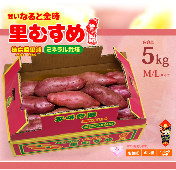 なると金時 里むすめ (M-L/5kg) 徳島県 里浦産 贈答ランク ミネラル栽培 鳴門金時 鳴門 なると きんとき 芋 里娘 さとむすめ ホクホク 焼き芋 サツマイモ