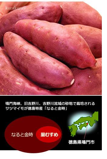 なると金時は、徳島県の主に鳴門市で栽培され、サツマイモの傑作と言われる高級お芋。ホクホク紛質、風味豊かで甘みが強いのが特徴です。なかでも、甘〜いなると金時として評判のトップブランドが、この「里むすめ」! 里むすめは、鳴門市の海浜地帯「里浦」地区で栽培されます。