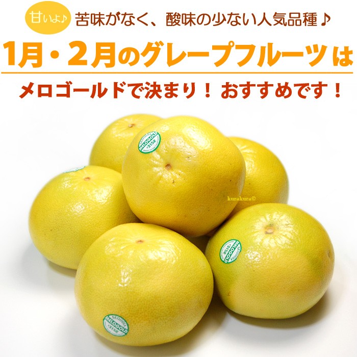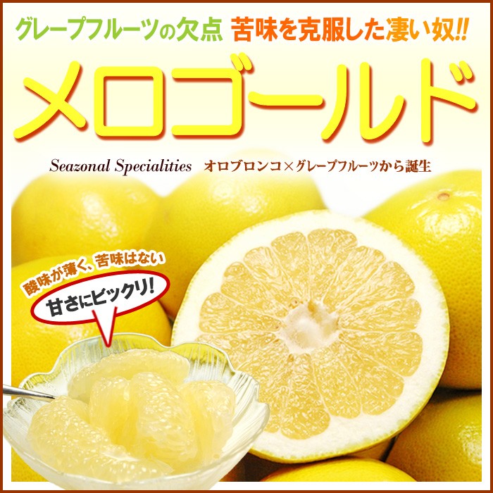 12月頃から流通しますが、当店では味の良い1月〜3月頃だけの販売です。「メロゴールド」はカリフォルニアからの輸入柑橘です。入荷在庫がなくなり次第、早期販売終了する場合もございます。