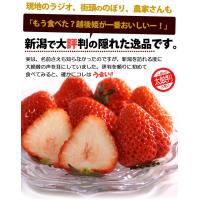 新潟県園芸試験場において、母親に「寒さに強いベルルージュ×女峰」、父親に「とよのか苺」を交配して誕生しました。生まれも育ちも新潟のブランド苺です。