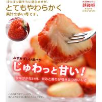果肉はとってもやわらかく“じゅわっ”と甘い!みずみずしい果汁感が特徴です。酸っぱくないイチゴですよ。