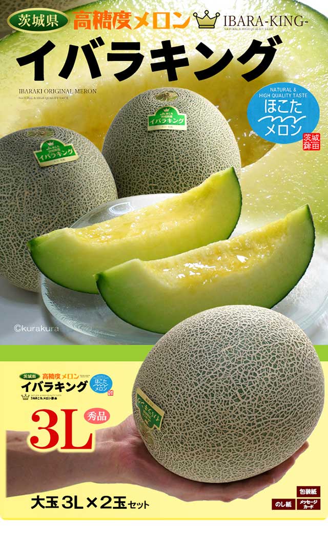 イバラキング 3L×2玉 (約2.5kg) 茨城産 秀品 茨城王 メロン めろん 大玉 ほこた 鉾田 鉾田メロン いばらきんぐ 高糖度 甘い 青肉 メロン 父の日 ギフト 贈答