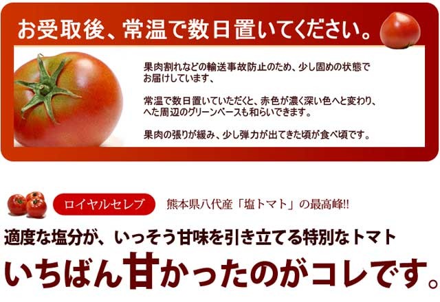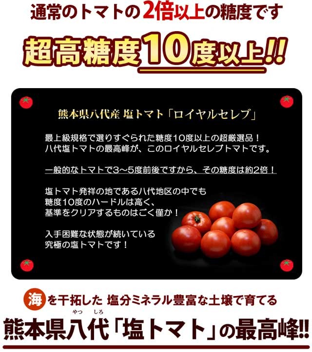 塩トマト ロイヤルセレブ (約900g) 熊本県 八代産 とまと 塩とまと はちべえトマト 高級 フルーツトマト フルーツ 糖度10度以上 高糖度 甘い 八代 トマト ギフト