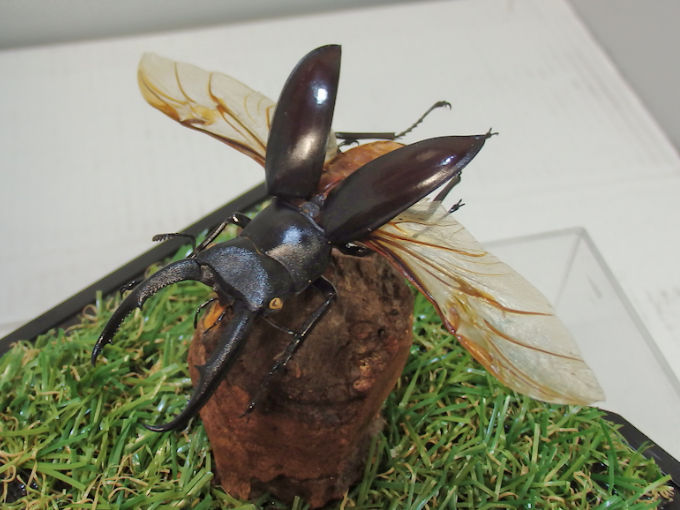 〇ジオラマ標本のコンセプト・特徴 ジオラマ標本は「生きているかのように今にも動き出す、リアル感」をキャッチコピーに、自然の中で生きていたときの昆虫達の一瞬を形にしています。