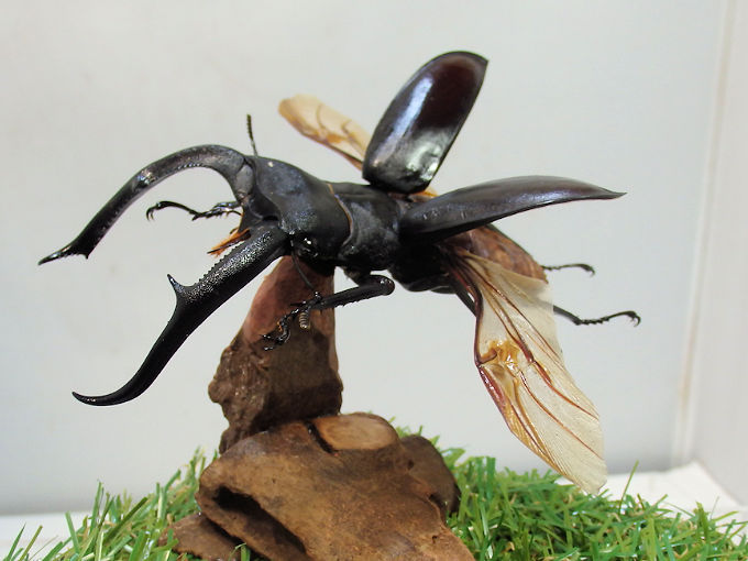 〇ジオラマ標本のコンセプト・特徴 ジオラマ標本は「生きているかのように今にも動き出す、リアル感」をキャッチコピーに、自然の中で生きていたときの昆虫達の一瞬を形にしています。