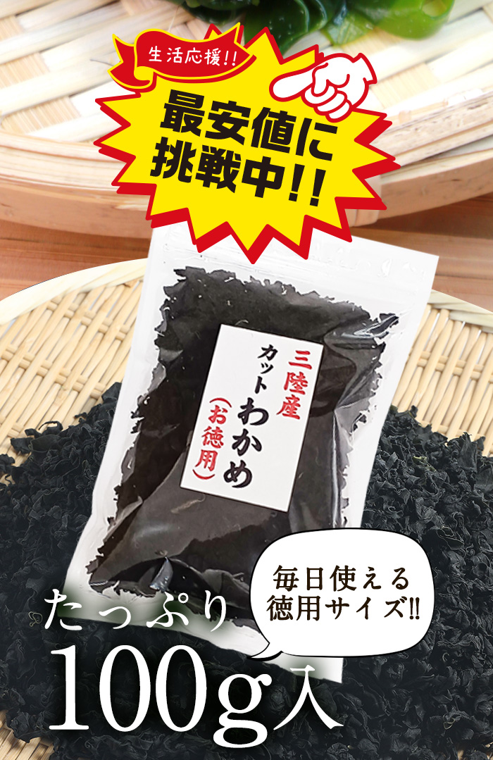 三陸産 カットわかめ 100g 栄養豊富な肉厚わかめ わかめ 若布 wakame ミネラルたっぷり 送料無料 業務用お得 カットワカメ 乾燥わかめ 乾燥ワカメ