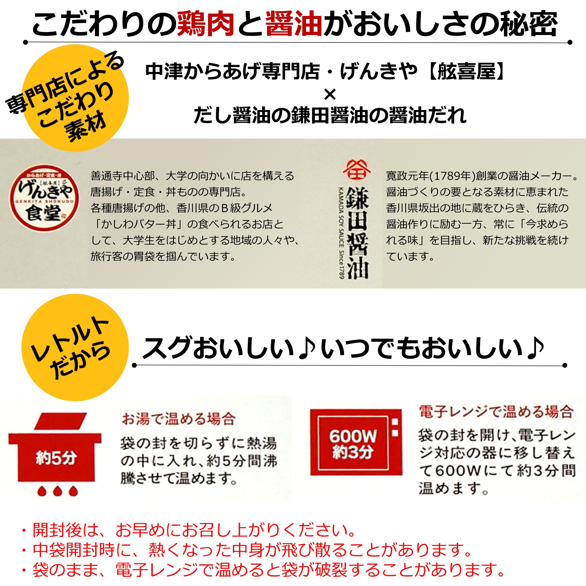 レトルトだから温めたらそのままお皿へ!ご飯にもお酒にもあう話題のB級グルメ。長期保存も可能なので、常備菜としても便利です // 香川県 さぬき名物 ご飯のお供 お酒 日本酒 おつまみ 丼 国産 鶏肉 げんきや 鎌田醤油 常備食 保存食 お土産 長期保存 常温保存 時短料理 レンチン インスタント まとめ買い