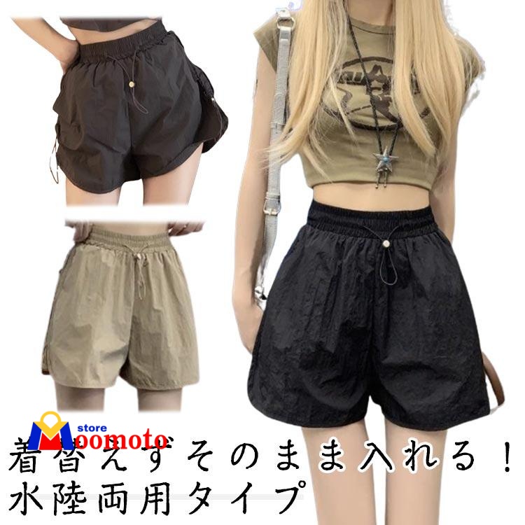 ショート丈 無地 レディース 接触冷感 サーフパンツ UVカット 短パン 海パン 水着 サーフパンツ 体型カバー 大きいサイズ ウエスト紐 レディース