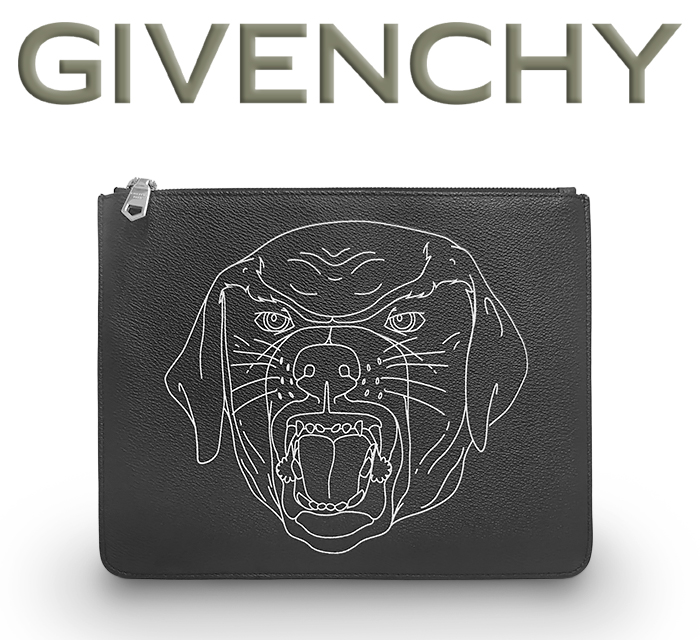 【超美品 ほぼ未使用】 ジバンシィ ジバンシー GIVENCHY ポーチ クラッチ セカンドバッグ 鞄 ドッグ レザー ブラック 黒 メンズ レディース