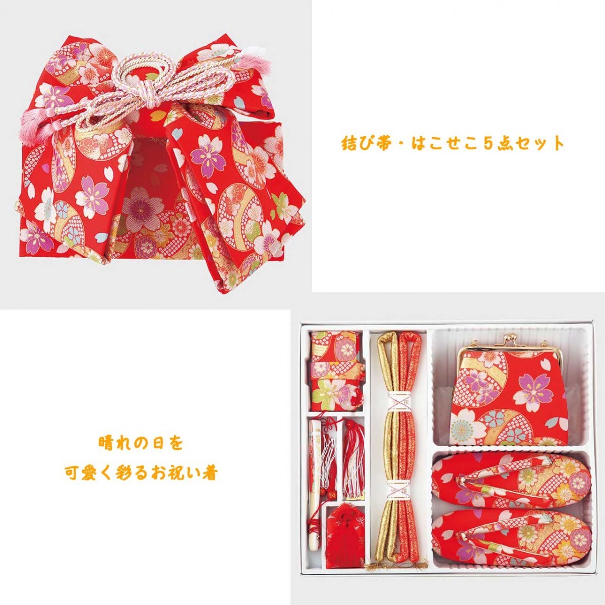 | 結び帯 はこせこ5点ペアセット 七五三からお正月まで、さまざまな晴れの日に大活躍します。 |
