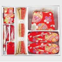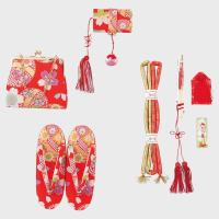 【 結び帯 はこせこ5点 ペアーセット 】 七五三の七歳のお祝いに豪華な帯と箱せこセットはいかがですか? 着物を彩るのにかかせない小物類です。 草履やバッグなどがセットになっています。 箱せこセットとは、草履、バック、丸絎(まるぐけ)又は 帯締、末広(扇子) お守り、筥迫(はこせこ)がセットになったものをいいます。 ●内容と説明 [女児用結び帯] 素材 ポリエステル、ナイロンなど サイズ 中 [草履] サイズ M寸(18cm) [バッグ] [丸絎] 「まるぐけ」と言います。帯締の一種です。 丸い棒状になっており、芯に真綿が入っています。 七五三や花嫁衣装に用いられます。 [末広] 扇子のことです、縁起をかつぎ「すえひろ」と呼びます。 帯に挟みます。 [筥迫] 「はこせこ」と言います、箱迫とも書きます。 中にちり紙を入れ、衿の合わせ目、懐に少しはみ出させて携帯します。 江戸時代は武家の女性のたしなみであり、おしゃれのポイントでした。 今では七五三や花嫁衣装の装飾として残っています。 [お守り] ●なおこのセットには髪飾りが付属していません。 髪飾りもご希望の方は別途お求め下さい。 店在庫欠品の場合はメーカーよりお取り寄せ後の発送になります、 ご了承下さい |