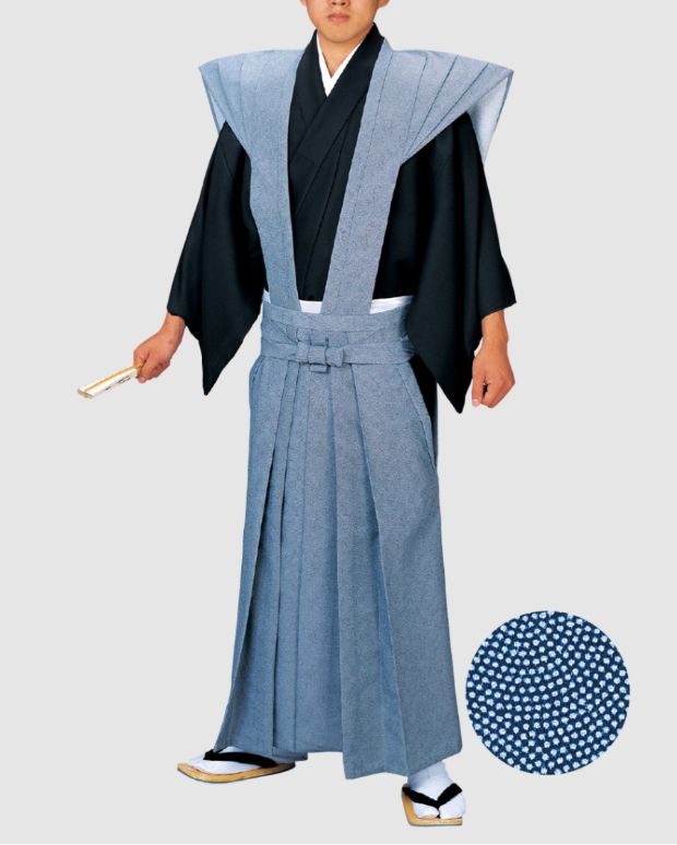 | 裃(かみしも)とは、江戸時代の武士の礼装として用いられた、 上半身の「肩衣(かたぎぬ)」と下半身の「袴(はかま)」が一揃いになった和服のことです。 現代でいう「スーツ」のようなものに相当します。 現代での裃 伝統芸能:歌舞伎や能などで役柄や身分を示す衣装として使われる。 祭礼・行事:節分の豆まきや神事などで着用されることもある。 象徴的意味:礼儀正しさや格式を表す衣装として、日本文化の中で特別な意味を持ち続けている。 別注にて紋入れも承ります。 貼り紋(6枚一組)、すり込み紋(4つ紋)。 ご希望の場合には先にお知らせください。 神社の儀式:住職や神職が礼装として。需要があります。 サイズ表を参考にご希望サイズを指定ください。 |