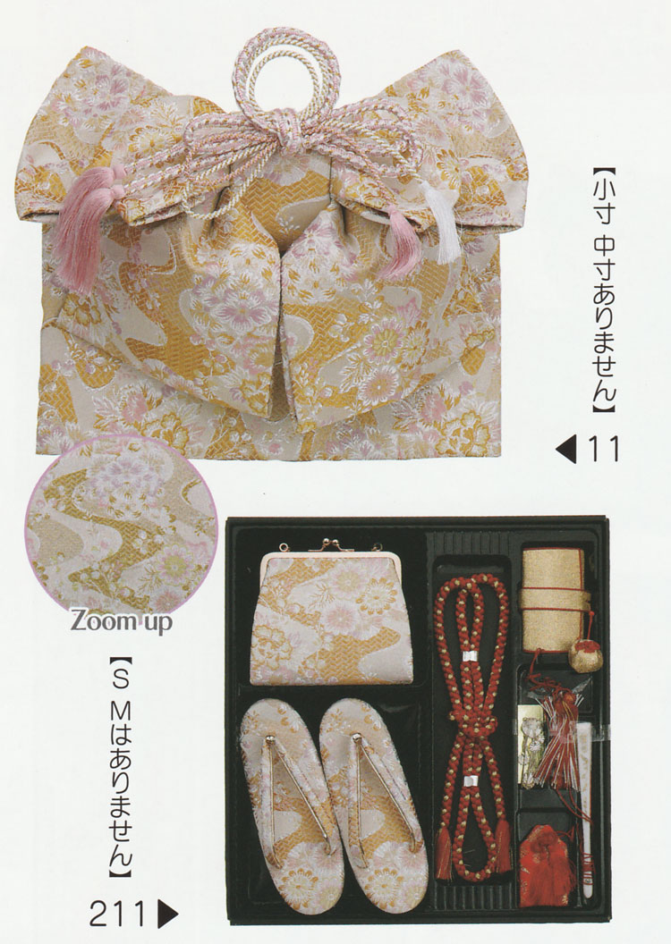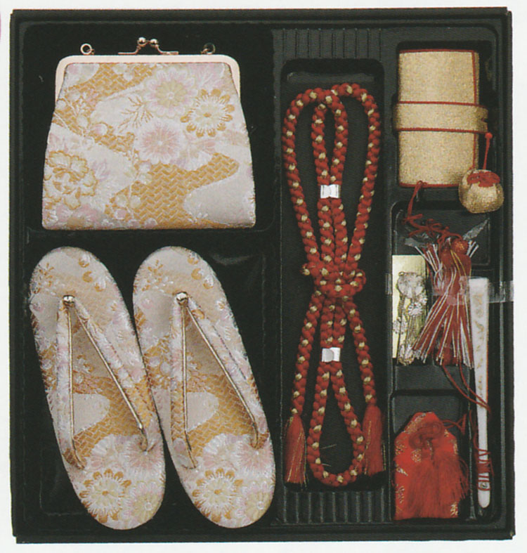 七五三の七歳のお祝いに豪華な帯と箱せこセット 着物を彩るのにかかせない小物類です。