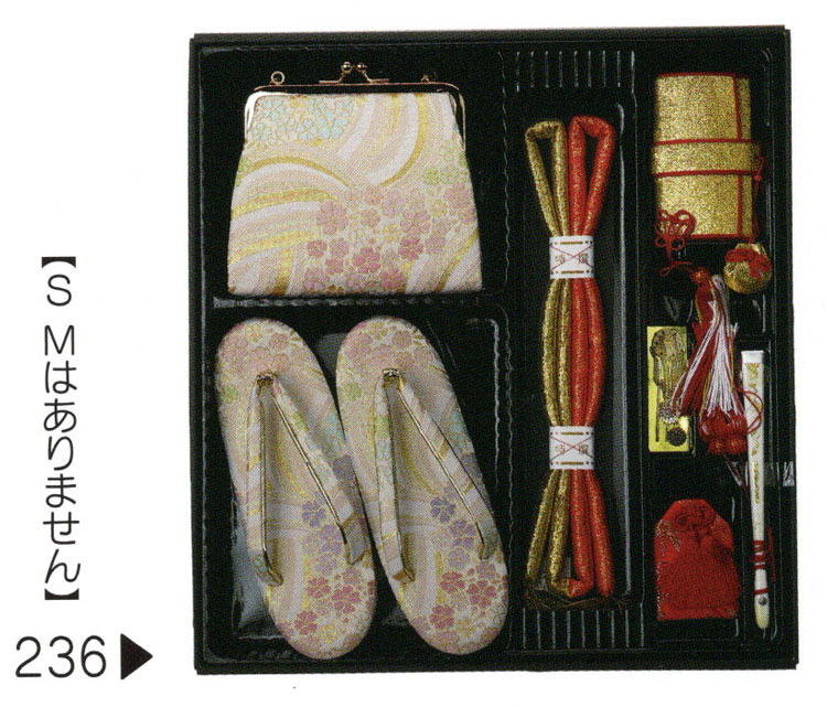 七五三の七歳のお祝いに豪華な帯と箱せこセット 着物を彩るのにかかせない小物類です。