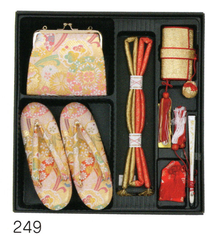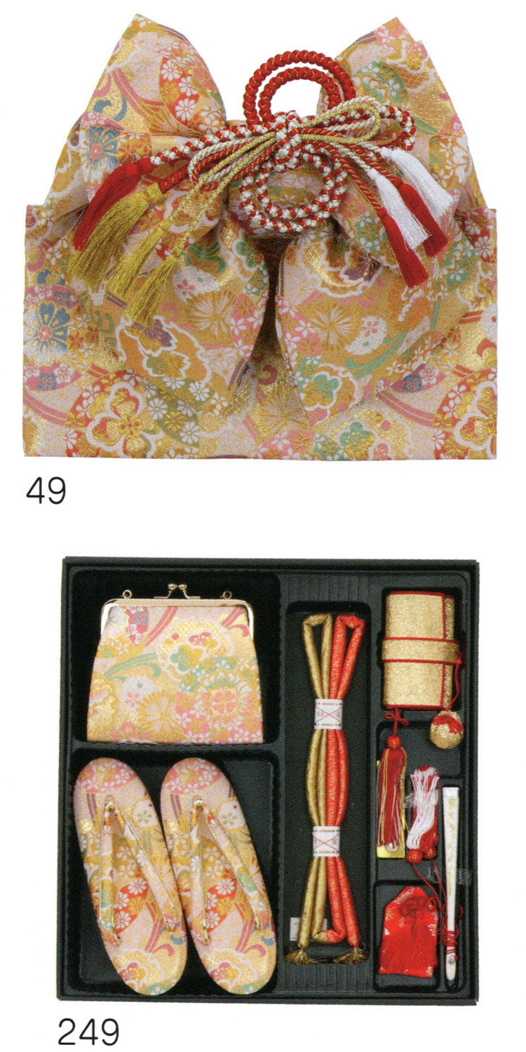| 【 結び帯 はこせこ ペアーセット 】 七五三の七歳のお祝いに豪華な帯と箱せこセットはいかがですか? 着物を彩るのにかかせない小物類です。 草履やバッグなどがセットになっています。 箱せこセットとは、草履、バック、丸絎(まるぐけ)又は 帯締、末広(扇子) お守り、筥迫(はこせこ)がセットになったものをいいます。 ●内容と説明 [女児用結び帯] 素材 ポリエステル、ナイロン サイズ 大 中 小 [草履] S サイズ 小寸(16.5cm) M サイズ 中寸(18.0cm) L サイズ 大寸(21.0cm) [バッグ] [丸絎] 「まるぐけ」と言います。帯締の一種です。 丸い棒状になっており、芯に真綿が入っています。 七五三や花嫁衣装に用いられます。 [末広] 扇子のことです、縁起をかつぎ「すえひろ」と呼びます。 帯に挟みます。 [筥迫] 「はこせこ」と言います、箱迫とも書きます。 中にちり紙を入れ、衿の合わせ目、懐に少しはみ出させて携帯します。 江戸時代は武家の女性のたしなみであり、おしゃれのポイントでした。 今では七五三や花嫁衣装の装飾として残っています。 [お守り] ●なおこのセットには髪飾りが付属していません。 髪飾りもご希望の方は別途お求め下さい。 メーカーよりお取り寄せ後の発送になります、ご了承下さい。 |