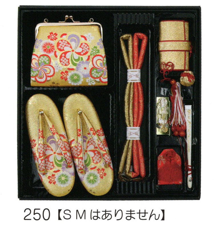 七五三の七歳のお祝いに豪華な帯と箱せこセット 着物を彩るのにかかせない小物類です。