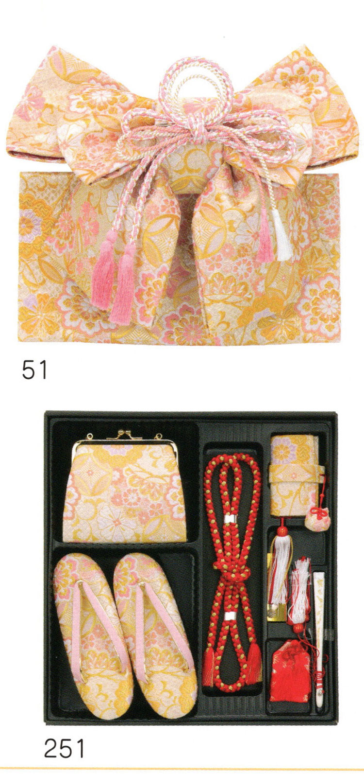 | 【 結び帯 はこせこ ペアーセット 】 七五三の七歳のお祝いに豪華な帯と箱せこセットはいかがですか? 着物を彩るのにかかせない小物類です。 草履やバッグなどがセットになっています。 箱せこセットとは、草履、バック、丸絎(まるぐけ)又は 帯締、末広(扇子) お守り、筥迫(はこせこ)がセットになったものをいいます。 ●内容と説明 [女児用結び帯] 素材 ポリエステル、ナイロン サイズ 大 中 小 [草履] S サイズ 小寸(16.5cm) M サイズ 中寸(18.0cm) L サイズ 大寸(21.0cm) [バッグ] [丸絎] 「まるぐけ」と言います。帯締の一種です。 丸い棒状になっており、芯に真綿が入っています。 七五三や花嫁衣装に用いられます。 [末広] 扇子のことです、縁起をかつぎ「すえひろ」と呼びます。 帯に挟みます。 [筥迫] 「はこせこ」と言います、箱迫とも書きます。 中にちり紙を入れ、衿の合わせ目、懐に少しはみ出させて携帯します。 江戸時代は武家の女性のたしなみであり、おしゃれのポイントでした。 今では七五三や花嫁衣装の装飾として残っています。 [お守り] ●なおこのセットには髪飾りが付属していません。 髪飾りもご希望の方は別途お求め下さい。 メーカーよりお取り寄せ後の発送になります、ご了承下さい。 |