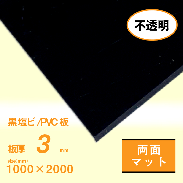 塩ビ板 3mm厚 黒 両面マット(ツヤ消し) 1000×2000[mm]