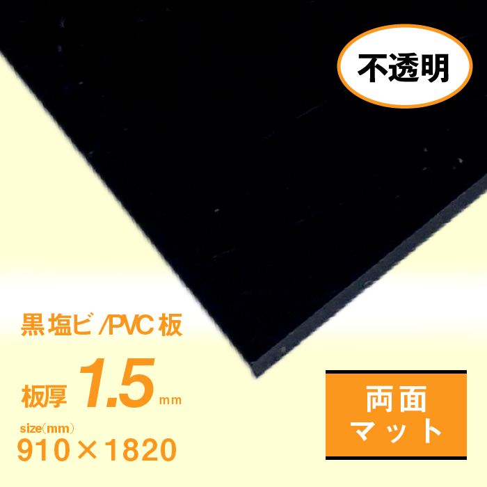 塩ビ板 1.5mm厚 黒 両面マット(ツヤ消し) 910×1820[mm]
