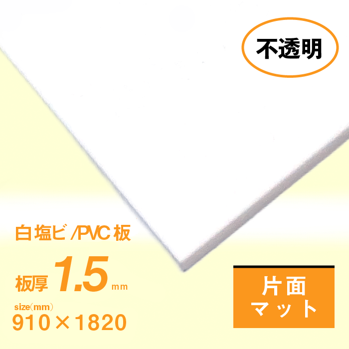 塩ビ板 1.5mm厚 白 片面マット(ツヤ消し) 910×1820[mm]