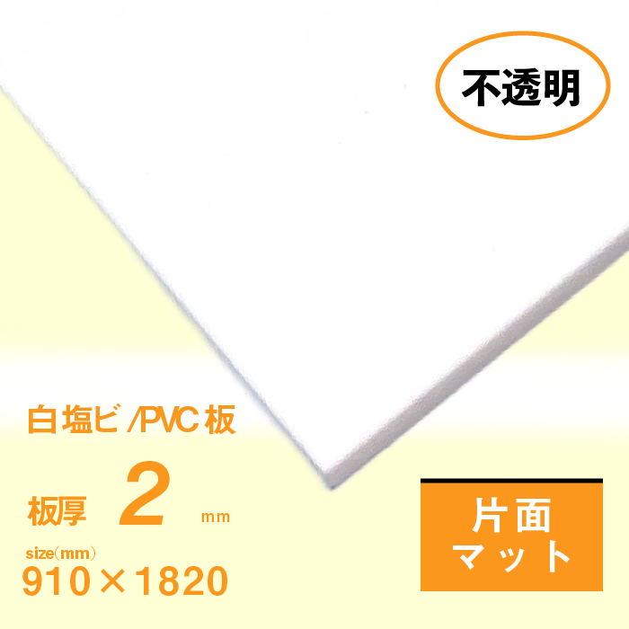 塩ビ板 2mm厚 白 片面マット(ツヤ消し) 910×1820[mm]