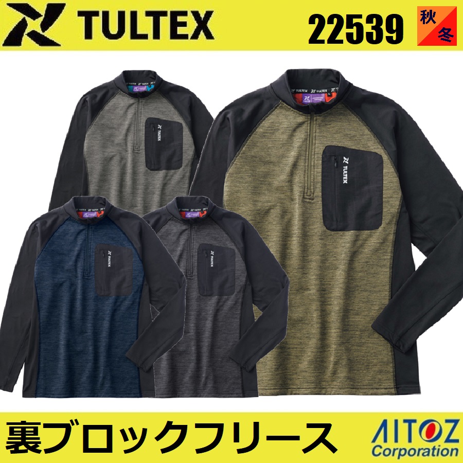 (秋冬) タルテックス アイトス 22539 裏ブロックフリース防風ハーフジップハイネック AITOZ TULTEX ワークウェア