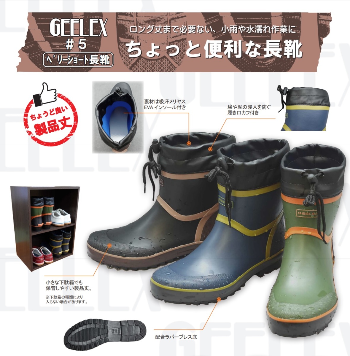 福山ゴム Gレックス 5 ショート長靴 GEELEX #5 レインブーツ