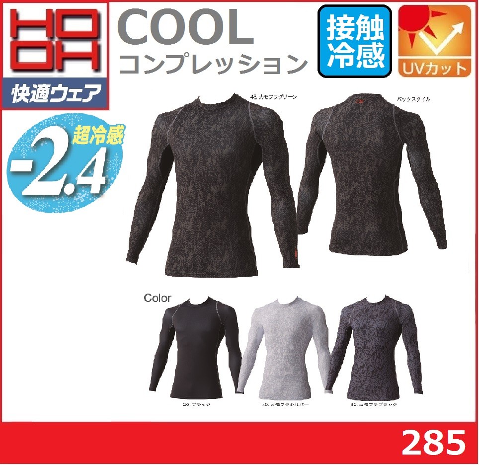 (春夏) 快適ウェア 285 HOOH クールコンプレッション 接触冷感 S〜8L 吸汗速乾 UVカット 鳳凰 村上被服 ワークウェア