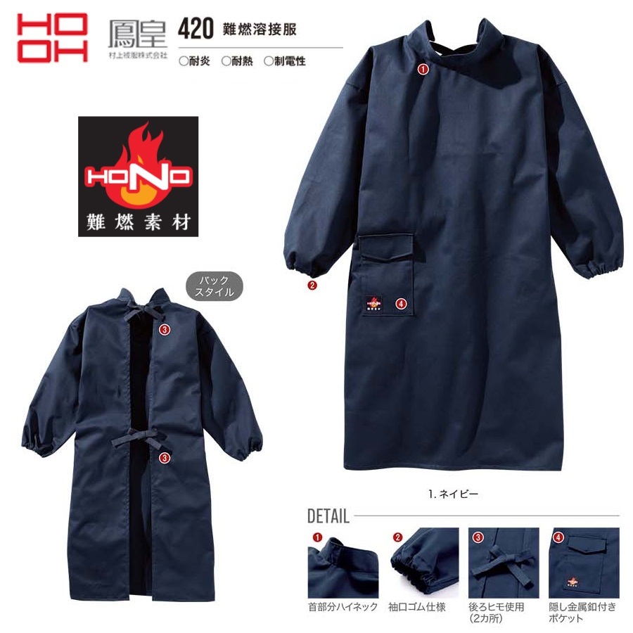 (綿100%) 難燃溶接服 村上被服 420 割烹着 耐炎 耐火 耐熱 制電