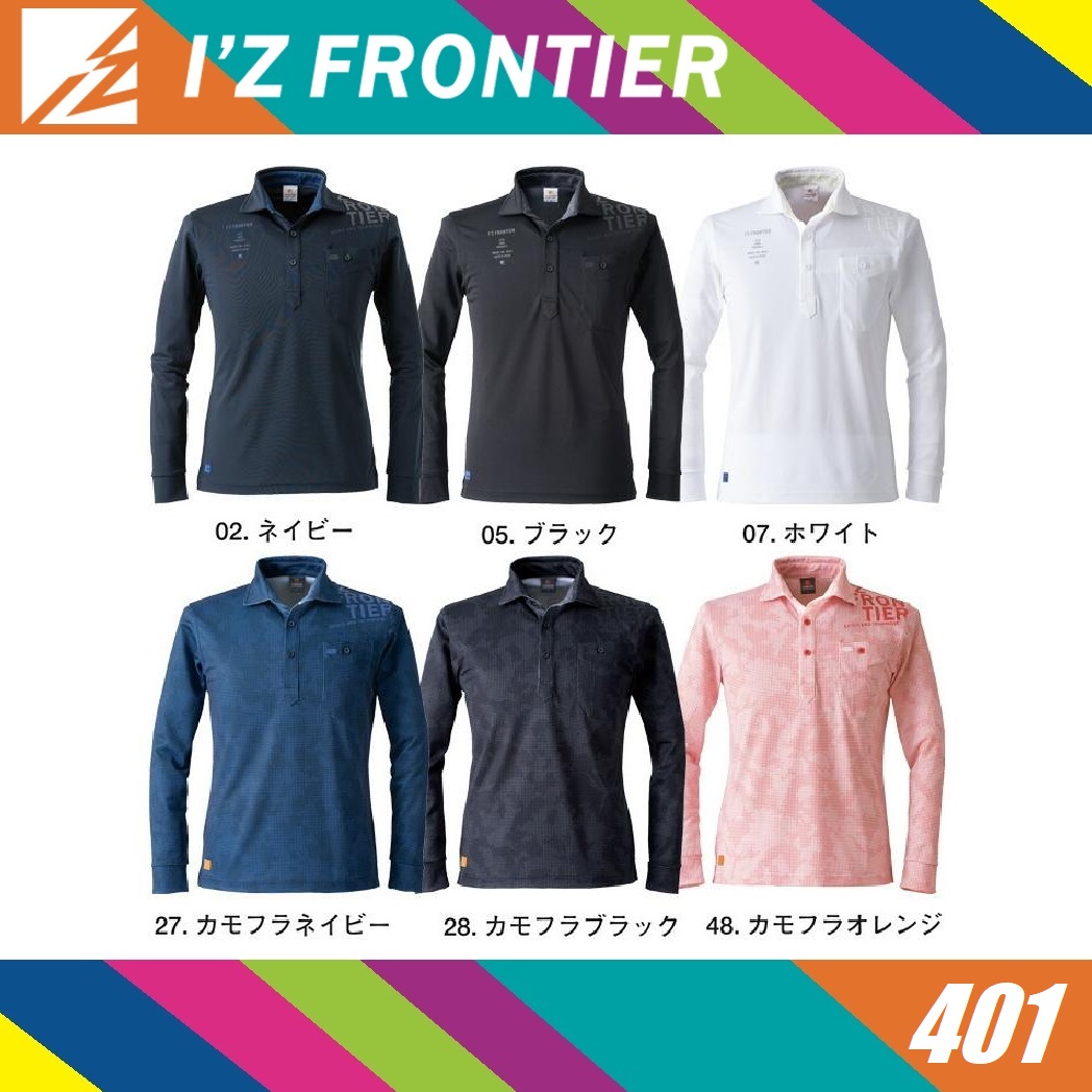 (アウトレット 在庫処分) アイズフロンティア 401 ドライストレッチ長袖ポロシャツ I'Z FRONTIER (ネーム刺しゅうできます) ワークウェア