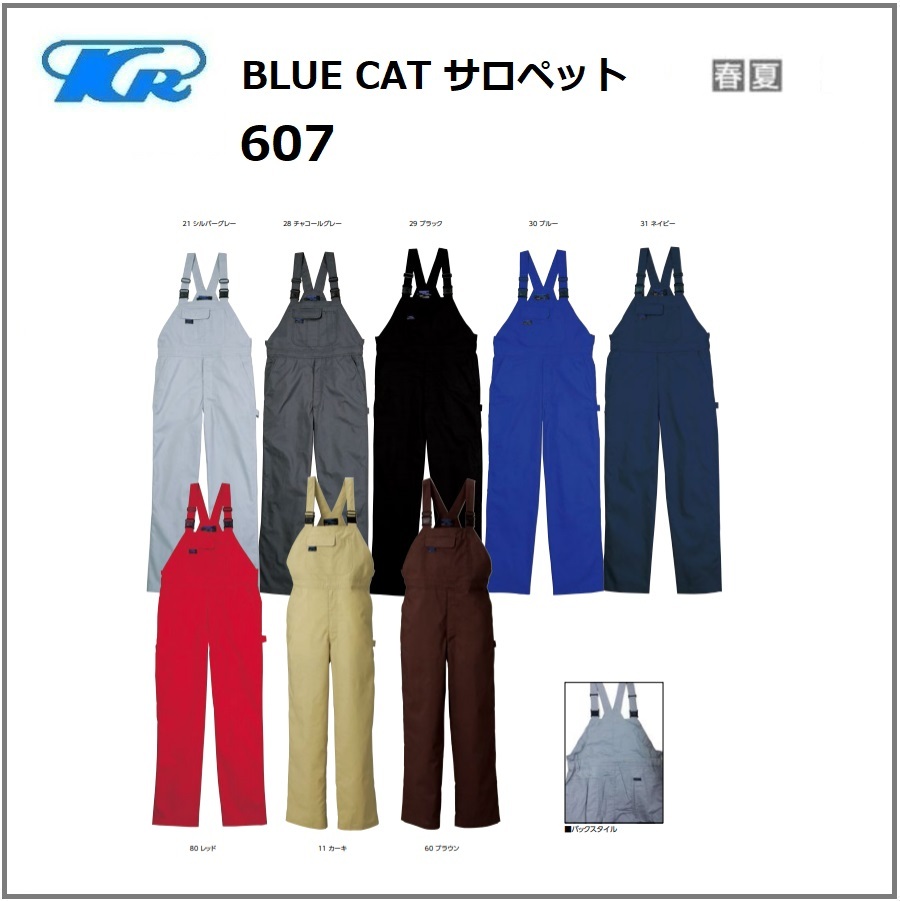 クレヒフク 607 作業服 BLUE CAT サロペット 春夏 S〜5L (すそ直しできます)