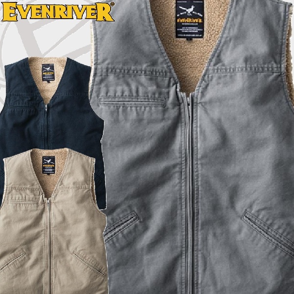 イーブンリバー R605 コットン裏ボアベスト EVENRIVER 防寒ベスト (社名ネーム一か所無料) ワークウェア