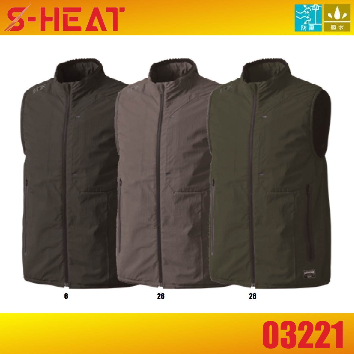 アウトレット 在庫処分 (秋冬) 防寒ベスト インナーベスト S-HEAT シンメン 03221 AIR ARMOUR ヒートベスト 防風 撥水 ワークウェア