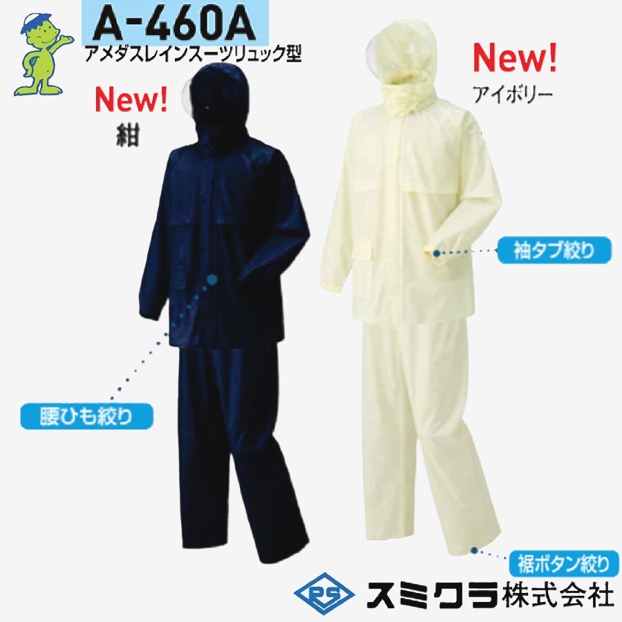 スミクラ A-460A アメダスレインスーツリュック型 M〜EL 強力防水 カッパ レインコート