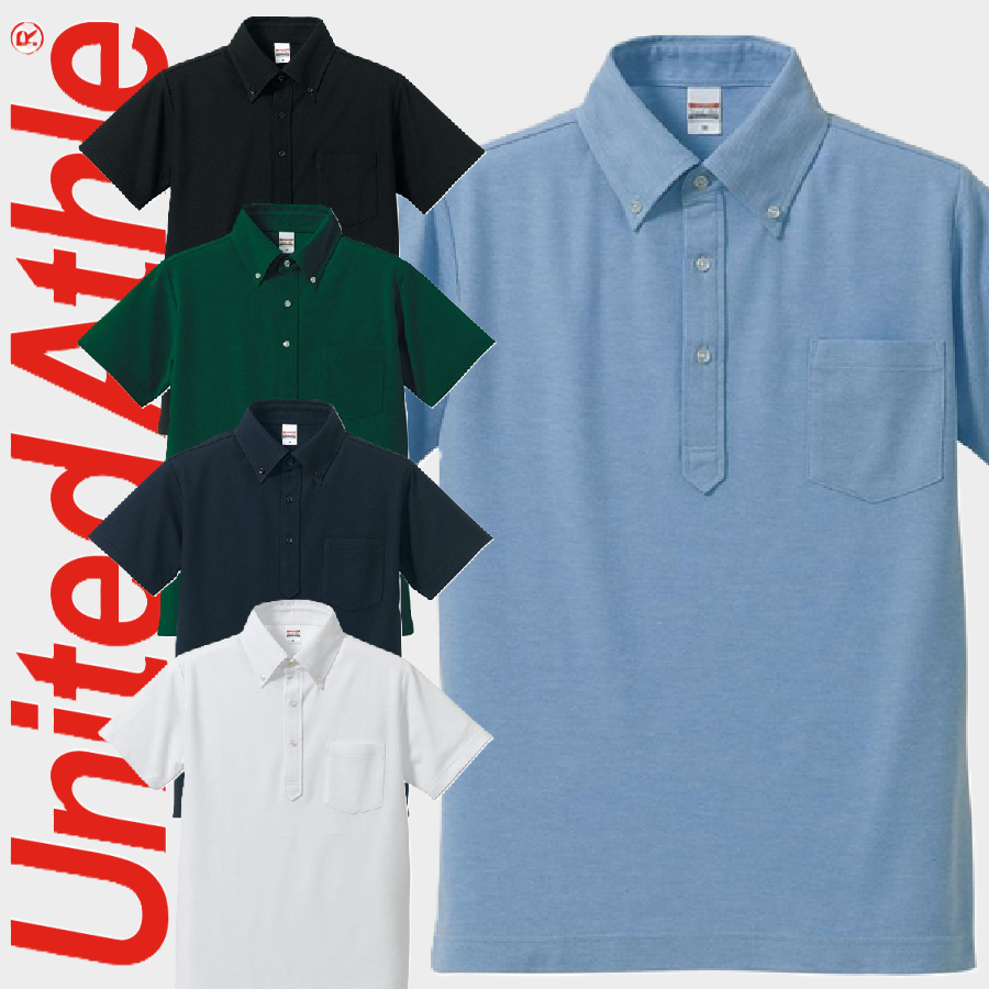 アウトレット 在庫処分 (ポケット付) ユナイテッドアスレ 5051-01 5.3オンス ドライカノコ ユーティリティー ポロシャツ (ボタンダウン) 半袖 UnitedAthle