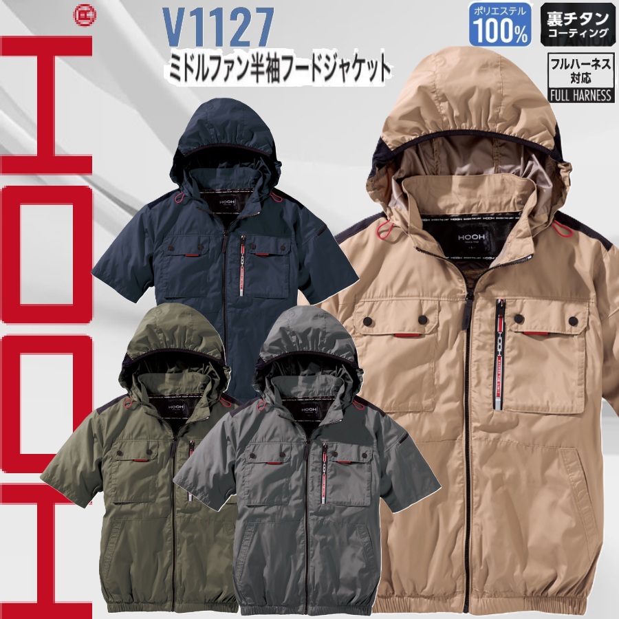 HOOH V1127 ミドルファン半袖フードジャケット (服のみ) 村上被服 快適ウェア 空調ウェア (社名ネーム一か所無料)