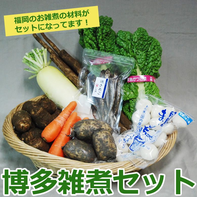 福岡のお雑煮8点セット(かつお菜・丸餅・あごだし・大根・人参・さといも・れんこん・ごぼう)