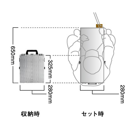 収納サイズ:幅280mm、長さ:325mm、厚さ:70mm