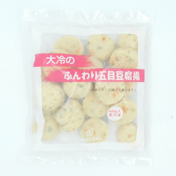 商品名「大冷 ふんわり五目豆腐揚 600g(20個以上)」