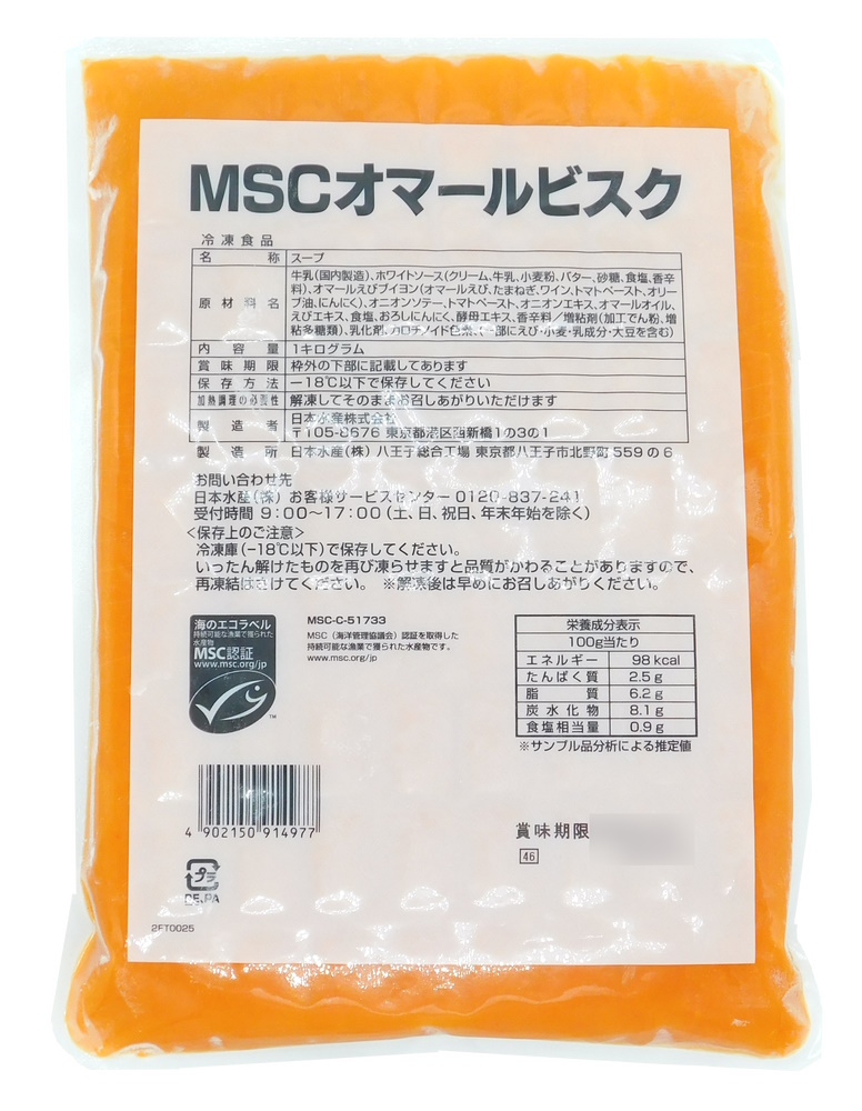 カナダのオマール産地で生産したブイヨンとニュージーランド産の濃厚なベシャメルソースをベースにした香りとコクの強いビスクです。