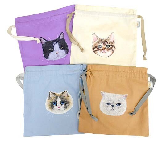 jou jou lier 猫ちゃん顔の巾着 ドローストリングバッグ ポーチ ケース 布袋 お弁当 コスメ 収納 エキゾチックショートヘア マンチカン ラグドール ハチワレ