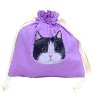 バッグの中の小分けに便利な巾着を、かわいいネコ顔のデザインでご用意しました。