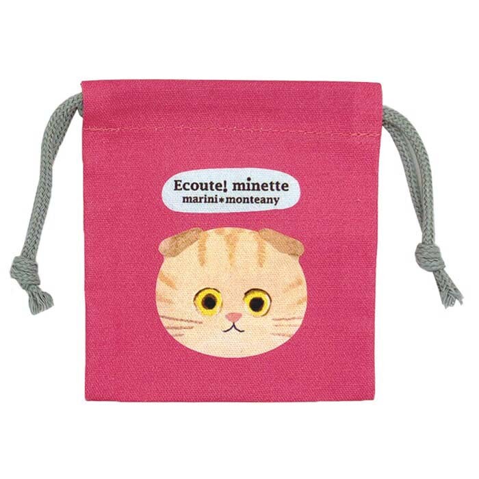 E.minette ミニミニ巾着 スコティッシュチャトラ 茶トラピンク スコ猫 小物入れ 布きんちゃく ケース コスメ プレゼント おしゃれ プレゼント 猫雑貨 猫柄